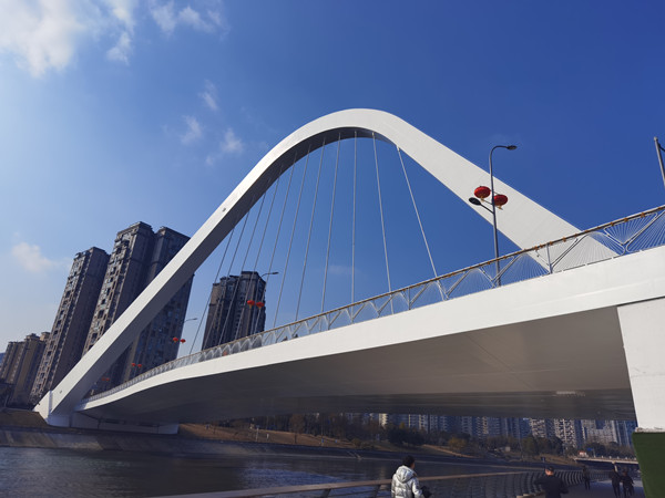 錦言大橋位于四川成都市金融總部商務(wù)區(qū),“成都金融總部商務(wù)區(qū)” 是四川省乃至我國西部地區(qū)金融業(yè)發(fā)展和金融機構(gòu)聚集的核心承載區(qū)。錦言大橋是成都金融總部商務(wù)區(qū)中連通錦江兩岸,連接高新區(qū)、錦江區(qū)兩個區(qū)域的重要橋梁。錦言大橋橋下錦江為VI級航道,主梁單跨138米,橋?qū)?0米,主拱跨徑135米,結(jié)構(gòu)為空間異形鋼拱橋,橋梁總面積約為4140平方米。