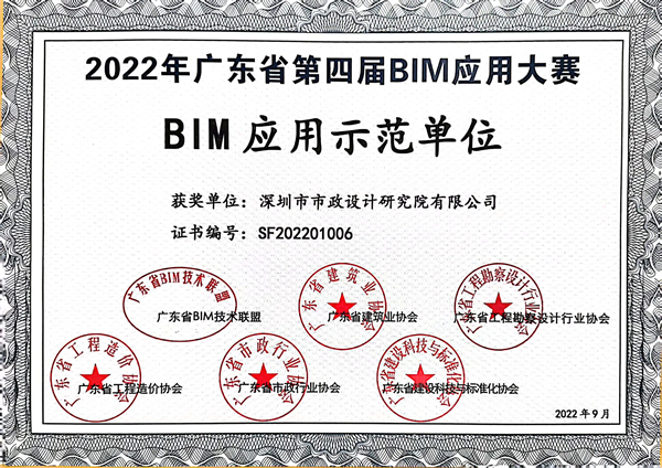 BIM應(yīng)用示范單位獲獎(jiǎng)證書