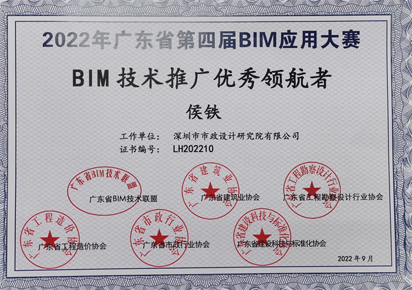 2023年3月15日,由廣東省BIM技術(shù)聯(lián)盟、廣東省建筑業(yè)協(xié)會(huì)、廣東省工程勘察設(shè)計(jì)行業(yè)協(xié)會(huì)等行業(yè)協(xié)會(huì)聯(lián)合舉辦的“廣東省第四屆BIM應(yīng)用大賽”頒獎(jiǎng)典禮暨第七屆廣東省BIM發(fā)展論壇在廣州順利舉辦。經(jīng)大賽專家委員會(huì)評(píng)審,深圳市政院榮獲“BIM應(yīng)用示范單位”榮譽(yù)稱號(hào)。尤值一提的是,廣東省共評(píng)選10家“BIM應(yīng)用示范單位”,深圳市政院為深圳市唯一獲獎(jiǎng)單位。此外,深圳市政院參選項(xiàng)目獲設(shè)計(jì)組一等獎(jiǎng),深圳市政院數(shù)字業(yè)務(wù)總監(jiān)侯鐵榮獲“BIM技術(shù)推廣優(yōu)秀領(lǐng)航者”稱號(hào),賴華輝博士榮獲“BIM技術(shù)應(yīng)用杰出人才”稱號(hào)。