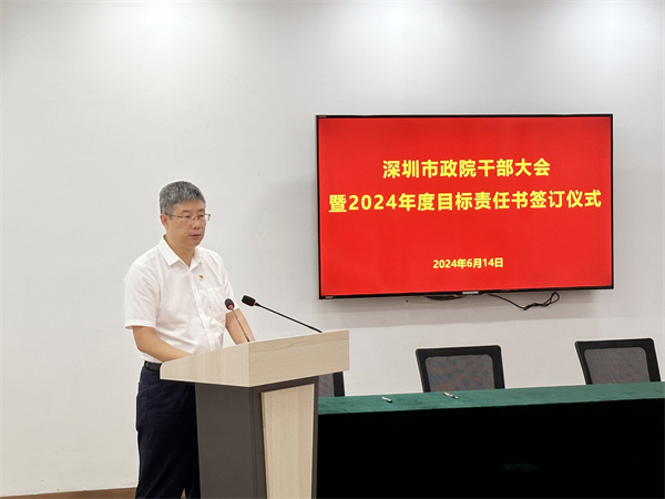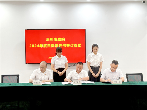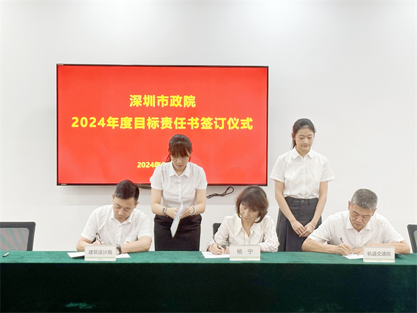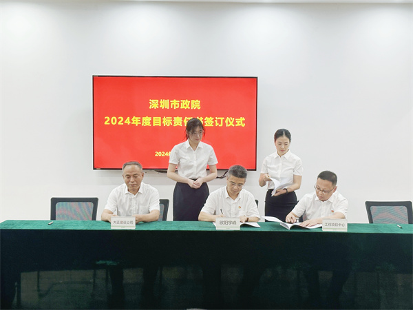會議首先宣讀了深圳市政院組織架構(gòu)調(diào)整、外地分院整合和領(lǐng)導(dǎo)分工三個文件。隨后,深圳市政院總經(jīng)理張中安與各生產(chǎn)部門分管領(lǐng)導(dǎo)分別簽訂了2024年目標(biāo)責(zé)任書。各生產(chǎn)部門分管領(lǐng)導(dǎo)與分管部門分別簽訂了2024年目標(biāo)責(zé)任書。