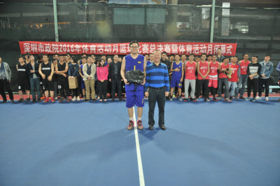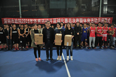 接下來進行的是閉幕式,張健君副總經(jīng)理分別為冠、亞、季軍頒發(fā)獎牌。此次比賽還頒發(fā)了2016年體育活動月最佳風尚、女生投籃和總決賽MVP等獎項。