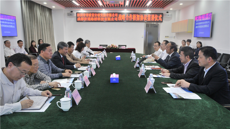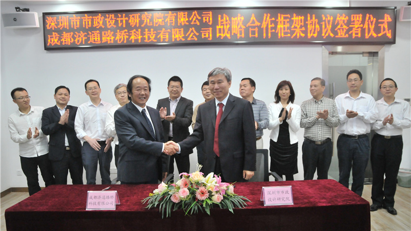2017424日下午,我公司與成都濟(jì)通路橋科技有限公司(以下簡(jiǎn)稱(chēng)“濟(jì)通科技”)戰(zhàn)略合作框架簽署儀式在公司一樓技術(shù)交流中心舉行,董事長(zhǎng)陳宜言設(shè)計(jì)大師和濟(jì)通科技伍廷貴董事長(zhǎng)代表雙方簽字。蔡明總經(jīng)理、宋榮亮主席、郭明副書(shū)記、王建新副總經(jīng)理、張健君副總經(jīng)理、許華林副總經(jīng)理、徐波總工程師以及相關(guān)部門(mén)負(fù)責(zé)人和專(zhuān)業(yè)總工,濟(jì)通科技伍大成總經(jīng)理、趙鵬賢副總經(jīng)理,鄒貽軍技術(shù)總監(jiān)、技術(shù)部高建主任出席簽署儀式。儀式由我公司黨委副書(shū)記、紀(jì)委書(shū)記、工會(huì)主席郭明主持。