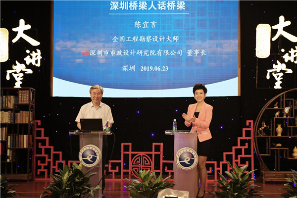 2019年6月23日,公司董事長(zhǎng)陳宜言大師應(yīng)深圳市委宣傳部、深圳市社科聯(lián)聯(lián)合邀請(qǐng)做客深圳市民文化大講堂,在深圳圖書館五樓報(bào)告廳為市民朋友作了一場(chǎng)題為《深圳橋梁人話橋梁》公益講座。