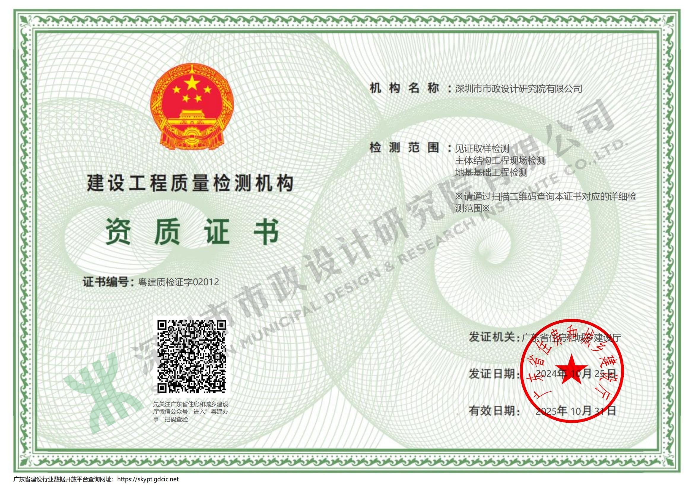 建設(shè)工程質(zhì)量檢測(cè)機(jī)構(gòu)資質(zhì)證書