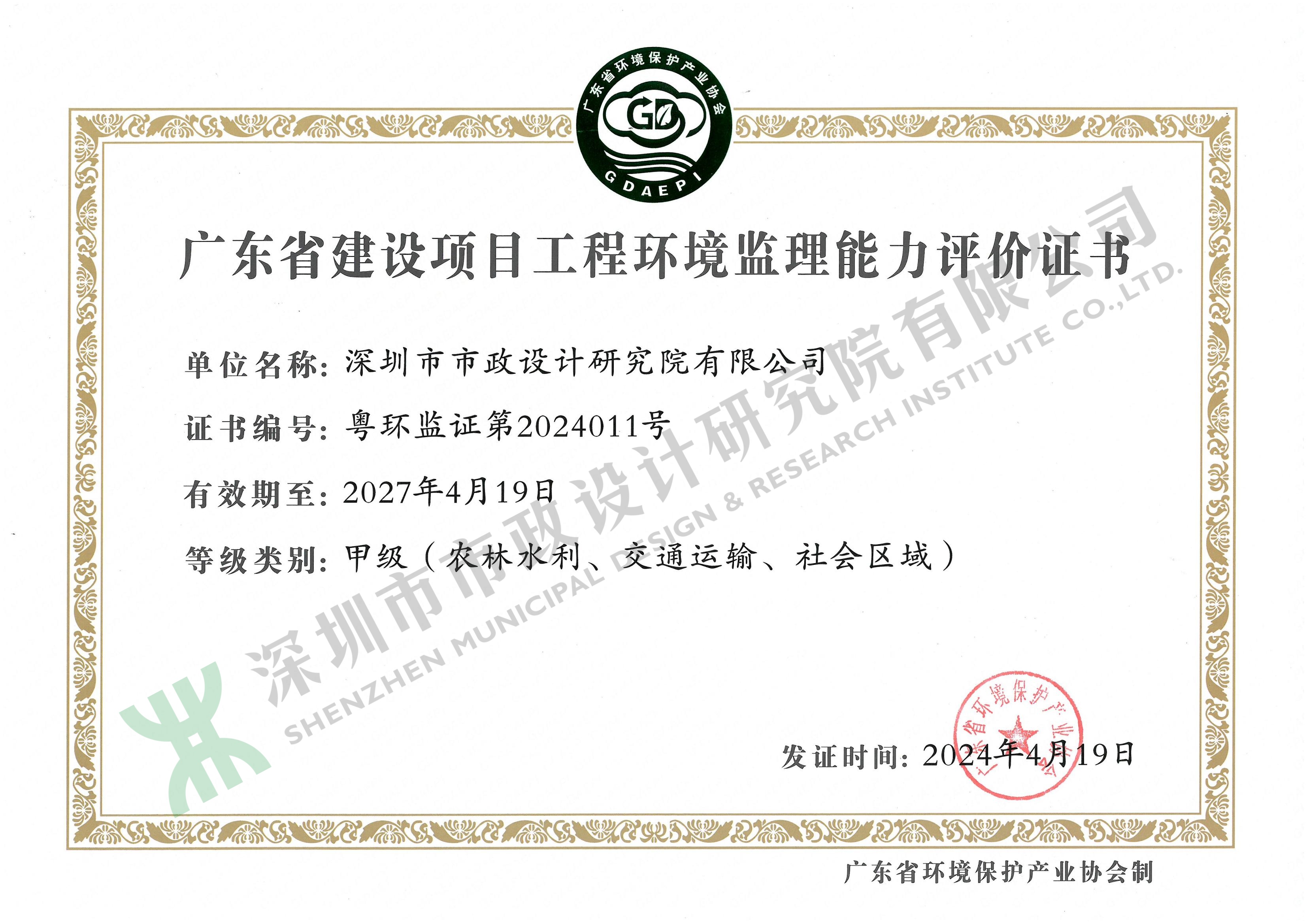 廣東省建設(shè)項(xiàng)目工程環(huán)境監(jiān)理能力評(píng)價(jià)證書