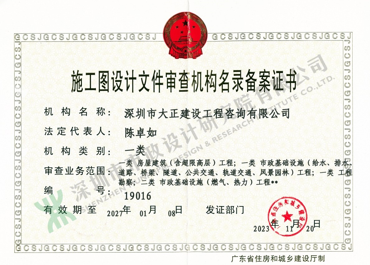 施工圖設(shè)計(jì)文件審查機(jī)構(gòu)名錄備案證書