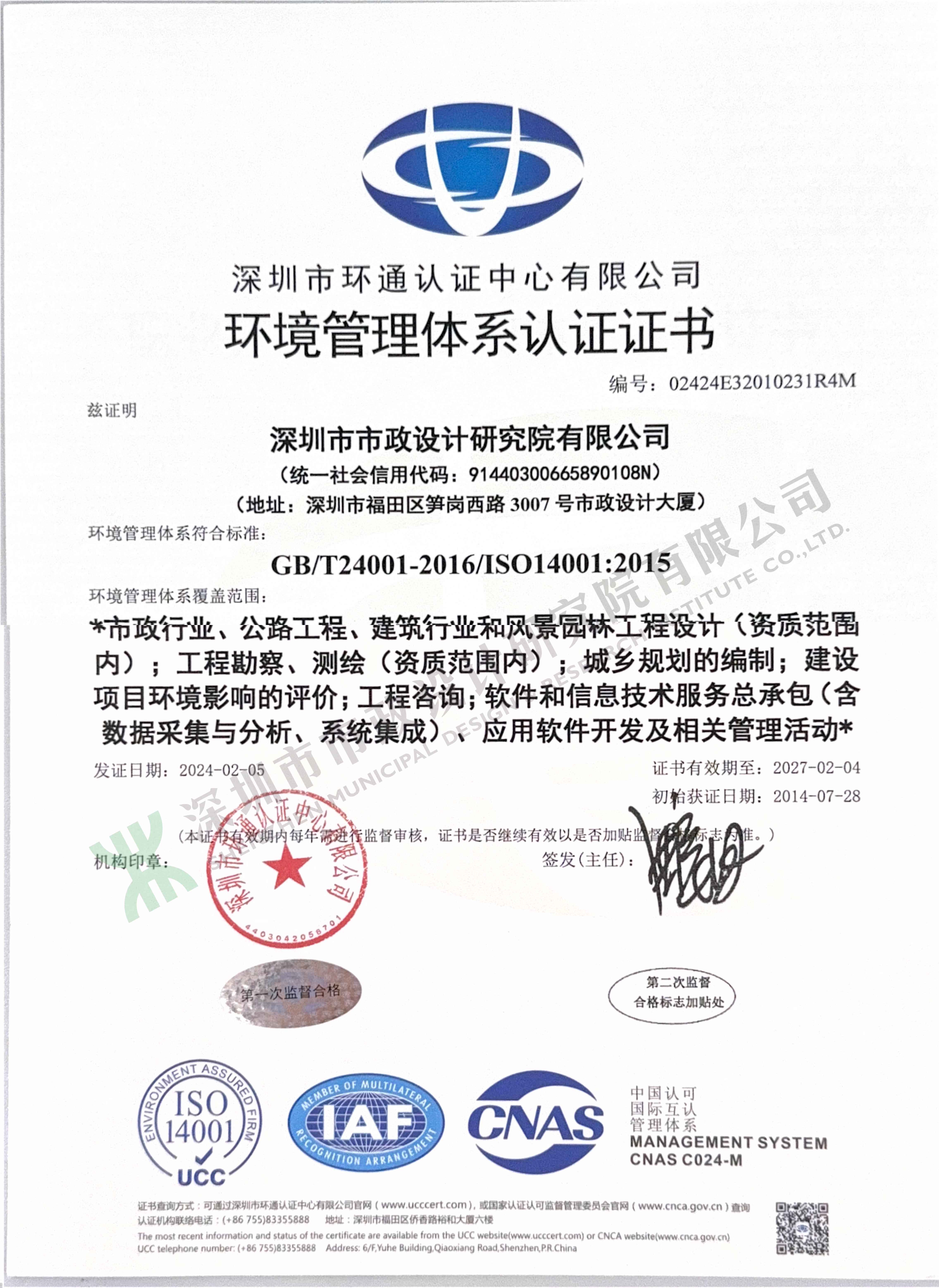 環(huán)境管理體系認(rèn)證證書(shū)